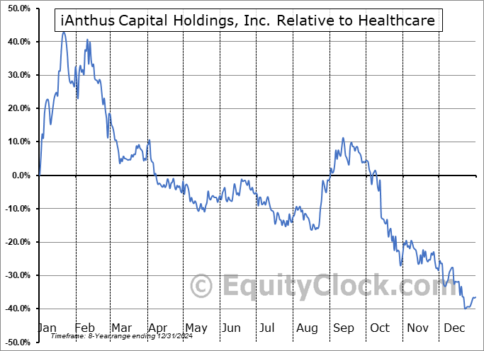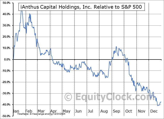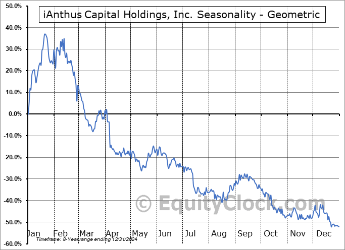 Analysis of the iAnthus Capital Holdings, Inc. (OTCMKT:ITHUF) seasonal charts above shows that a Buy Date of October 11 and a Sell Date of January 31 has resulted in a geometric average return of 6.19% above the benchmark rate of the S&P 500 Total Return Index over the past 8 years. This seasonal timeframe has shown positive results compared to the benchmark in 6 of those periods. This is a good rate of success and the return strongly outperforms the relative buy-and-hold performance of the stock over the past 8 years by an average of 64.57% per year.