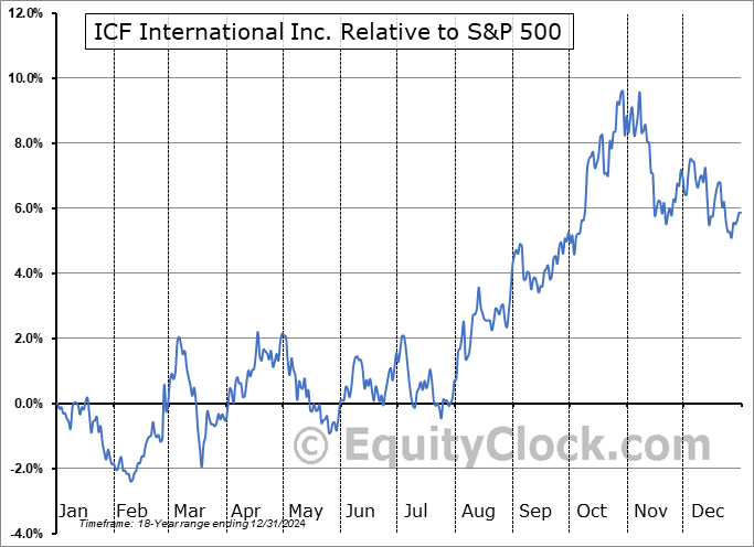 Analysis of the ICF International Inc. (NASD:ICFI) seasonal charts above shows that a Buy Date of July 16 and a Sell Date of November 2 has resulted in a geometric average return of 7.22% above the benchmark rate of the S&P 500 Total Return Index over the past 18 years. This seasonal timeframe has shown positive results compared to the benchmark in 16 of those periods. This is a very good rate of success and the return strongly outperforms the relative buy-and-hold performance of the stock over the past 18 years by an average of 5.27% per year.