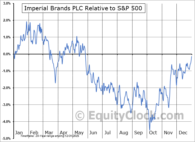 Analysis of the Imperial Brands PLC (OTCMKT:IMBBY) seasonal charts above shows that a Buy Date of October 12 and a Sell Date of January 25 has resulted in a geometric average return of 5.18% above the benchmark rate of the S&P 500 Total Return Index over the past 20 years. This seasonal timeframe has shown positive results compared to the benchmark in 16 of those periods. This is a very good rate of success and the return strongly outperforms the relative buy-and-hold performance of the stock over the past 20 years by an average of 8.66% per year.