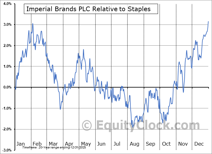 The seasonal timeframe correlates Poorly with the period of seasonal strength for the Consumer Staples sector, which runs from April 25 to November 23. The seasonal chart for the broad sector is available via the following link: Consumer Staples Sector Seasonal Chart.