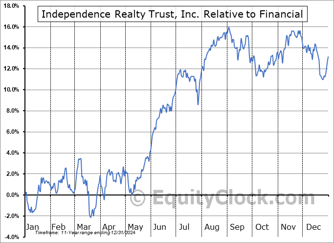 Analysis of the Independence Realty Trust, Inc. (NYSE:IRT) seasonal charts above shows that a Buy Date of March 23 and a Sell Date of June 11 has resulted in a geometric average return of 5.94% above the benchmark rate of the S&P 500 Total Return Index over the past 11 years. This seasonal timeframe has shown positive results compared to the benchmark in 10 of those periods. This is an excellent rate of success and the return strongly outperforms the relative buy-and-hold performance of the stock over the past 11 years by an average of 4.74% per year.