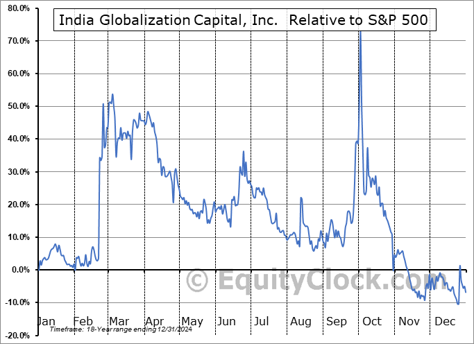 Analysis of the India Globalization Capital, Inc. (AMEX:IGC) seasonal charts above shows that a Buy Date of January 1 and a Sell Date of March 28 has resulted in a geometric average return of 13.37% above the benchmark rate of the S&P 500 Total Return Index over the past 18 years. This seasonal timeframe has shown positive results compared to the benchmark in 10 of those periods. This is a fair rate of success and the return strongly outperforms the relative buy-and-hold performance of the stock over the past 18 years by an average of 45.24% per year.