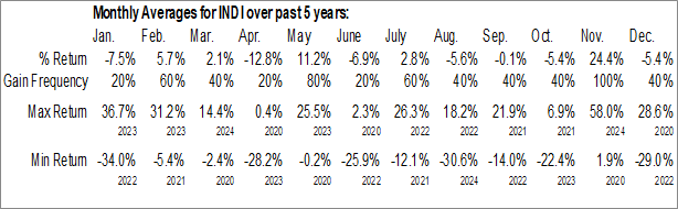 A word of caution: Only 5 years of data is available for shares of INDI, perhaps insufficient to create a seasonal profile that accurately gauges the seasonal tendencies influencing the investment. Ideally, while 20 years is preferred, at least 10 years of data is required to perform a seasonal analysis that is considered to be reliable for future seasonal periods.