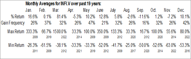 To download INFI.V seasonal chart data, please log in or Subscribe.
