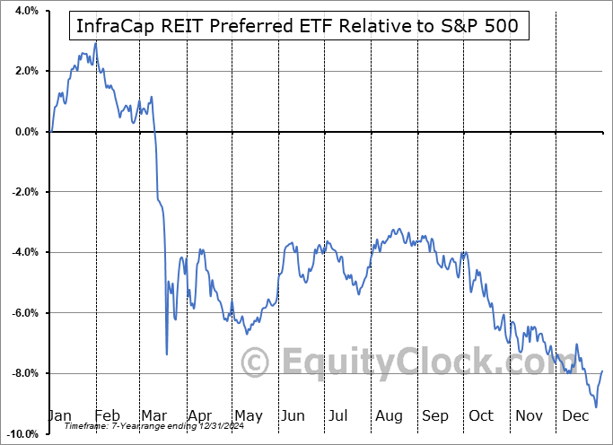 Analysis of the InfraCap REIT Preferred ETF (AMEX:PFFR) seasonal charts above shows that a Buy Date of July 10 and a Sell Date of September 30 has resulted in a geometric average return of 0.61% above the benchmark rate of the S&P 500 Total Return Index over the past 7 years. This seasonal timeframe has shown positive results compared to the benchmark in 5 of those periods. This is a good rate of success and the return strongly outperforms the relative buy-and-hold performance of the stock over the past 7 years by an average of 11.79% per year.
