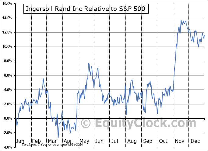 Analysis of the Ingersoll Rand Inc (NYSE:IR) seasonal charts above shows that a Buy Date of September 6 and a Sell Date of January 13 has resulted in a geometric average return of 12.42% above the benchmark rate of the S&P 500 Total Return Index over the past 7 years. This seasonal timeframe has shown positive results compared to the benchmark in 7 of those periods. This is an excellent rate of success and the return strongly outperforms the relative buy-and-hold performance of the stock over the past 7 years by an average of 11% per year.