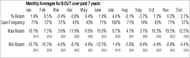 A word of caution: Only 6 years of data is available for shares of BOUT, perhaps insufficient to create a seasonal profile that accurately gauges the seasonal tendencies influencing the investment. Ideally, while 20 years is preferred, at least 10 years of data is required to perform a seasonal analysis that is considered to be reliable for future seasonal periods.