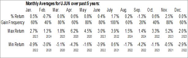 A word of caution: Only 5 years of data is available for shares of UJUN, perhaps insufficient to create a seasonal profile that accurately gauges the seasonal tendencies influencing the investment. Ideally, while 20 years is preferred, at least 10 years of data is required to perform a seasonal analysis that is considered to be reliable for future seasonal periods.