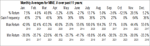 To download MINE.V seasonal chart data, please log in or Subscribe.