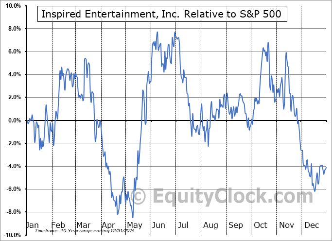 Analysis of the Inspired Entertainment, Inc. (NASD:INSE) seasonal charts above shows that a Buy Date of July 25 and a Sell Date of October 21 has resulted in a geometric average return of 6.9% above the benchmark rate of the S&P 500 Total Return Index over the past 10 years. This seasonal timeframe has shown positive results compared to the benchmark in 9 of those periods. This is an excellent rate of success and the return strongly outperforms the relative buy-and-hold performance of the stock over the past 10 years by an average of 18.87% per year.