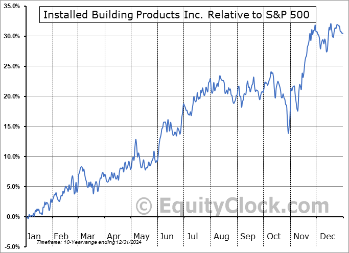 Analysis of the Installed Building Products Inc. (NYSE:IBP) seasonal charts above shows that a Buy Date of October 29 and a Sell Date of January 22 has resulted in a geometric average return of 13.93% above the benchmark rate of the S&P 500 Total Return Index over the past 10 years. This seasonal timeframe has shown positive results compared to the benchmark in 9 of those periods. This is an excellent rate of success and the return outperforms the relative buy-and-hold performance of the stock over the past 10 years by an average of 1.97% per year.