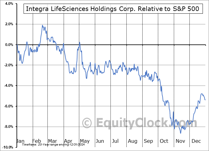 Analysis of the Integra LifeSciences Holdings Corp. (NASD:IART) seasonal charts above shows that a Buy Date of November 22 and a Sell Date of February 18 has resulted in a geometric average return of 4.13% above the benchmark rate of the S&P 500 Total Return Index over the past 20 years. This seasonal timeframe has shown positive results compared to the benchmark in 17 of those periods. This is a very good rate of success and the return strongly outperforms the relative buy-and-hold performance of the stock over the past 20 years by an average of 12.05% per year.