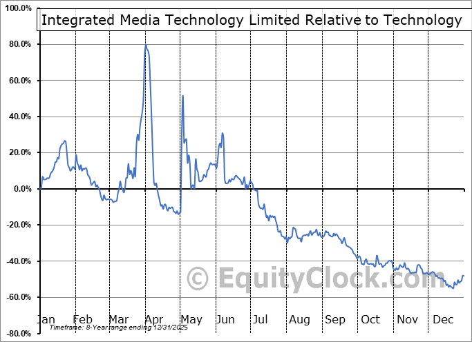 Analysis of the Integrated Media Technology Limited (NASD:IMTE) seasonal charts above shows that a Buy Date of October 15 and a Sell Date of January 19 has resulted in a geometric average return of 16.8% above the benchmark rate of the S&P 500 Total Return Index over the past 7 years. This seasonal timeframe has shown positive results compared to the benchmark in 6 of those periods. This is a very good rate of success and the return strongly outperforms the relative buy-and-hold performance of the stock over the past 7 years by an average of 65.62% per year.