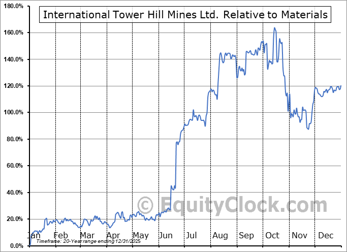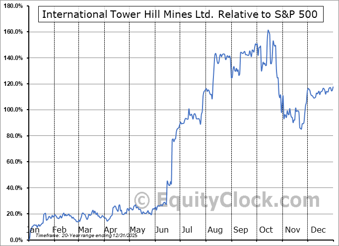 Analysis of the International Tower Hill Mines Ltd. (AMEX:THM) seasonal charts above shows that a Buy Date of November 21 and a Sell Date of February 21 has resulted in a geometric average return of 13.72% above the benchmark rate of the S&P 500 Total Return Index over the past 20 years. This seasonal timeframe has shown positive results compared to the benchmark in 16 of those periods. This is a very good rate of success and the return strongly outperforms the relative buy-and-hold performance of the stock over the past 20 years by an average of 21.92% per year.