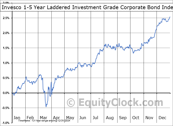 Analysis of the Invesco 1-5 Year Laddered Investment Grade Corporate Bond Index ETF (TSE:PSB.TO) seasonal charts above shows that a Buy Date of July 14 and a Sell Date of October 3 has resulted in a geometric average return of 0.02% above the benchmark rate of the S&P 500 Total Return Index over the past 13 years. This seasonal timeframe has shown positive results compared to the benchmark in 8 of those periods. This is a fair rate of success and the return strongly outperforms the relative buy-and-hold performance of the stock over the past 13 years by an average of 10.44% per year.