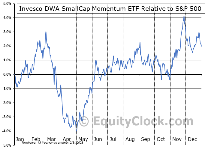 Analysis of the Invesco DWA SmallCap Momentum ETF (NASD:DWAS) seasonal charts above shows that a Buy Date of May 22 and a Sell Date of August 31 has resulted in a geometric average return of 1.74% above the benchmark rate of the S&P 500 Total Return Index over the past 13 years. This seasonal timeframe has shown positive results compared to the benchmark in 11 of those periods. This is a very good rate of success and the return strongly outperforms the relative buy-and-hold performance of the stock over the past 13 years by an average of 5.22% per year.
