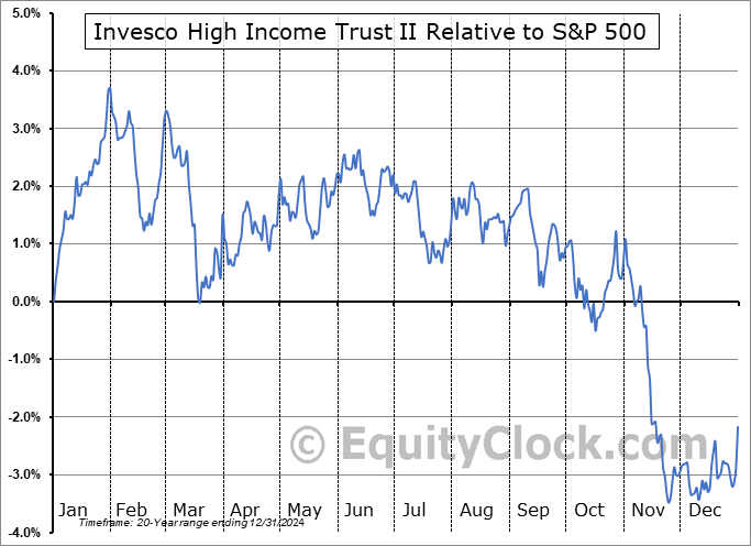 Analysis of the Invesco High Income Trust II (NYSE:VLT) seasonal charts above shows that a Buy Date of December 15 and a Sell Date of March 4 has resulted in a geometric average return of 4.67% above the benchmark rate of the S&P 500 Total Return Index over the past 20 years. This seasonal timeframe has shown positive results compared to the benchmark in 14 of those periods. This is a good rate of success and the return strongly outperforms the relative buy-and-hold performance of the stock over the past 20 years by an average of 9.55% per year.