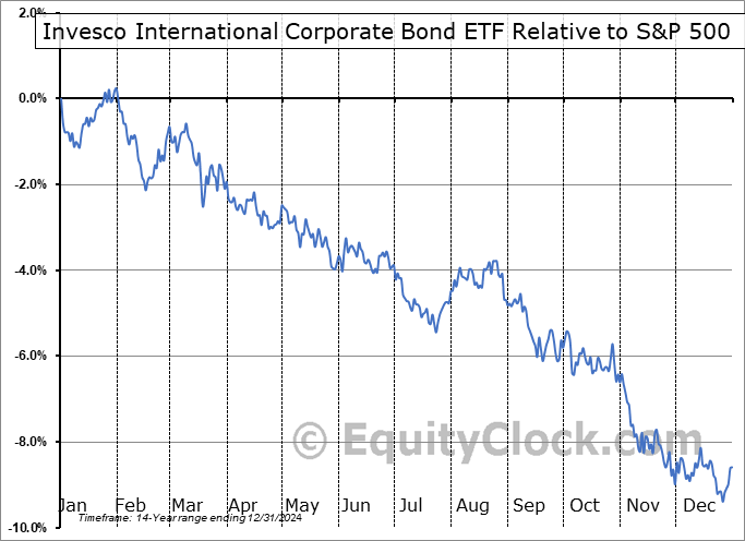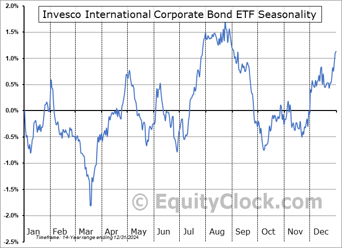 Analysis of the Invesco International Corporate Bond ETF (NYSE:PICB) seasonal charts above shows that a Buy Date of July 6 and a Sell Date of September 24 has resulted in a geometric average return of 0.06% above the benchmark rate of the S&P 500 Total Return Index over the past 14 years. This seasonal timeframe has shown positive results compared to the benchmark in 10 of those periods. This is a good rate of success and the return strongly outperforms the relative buy-and-hold performance of the stock over the past 14 years by an average of 11.39% per year.