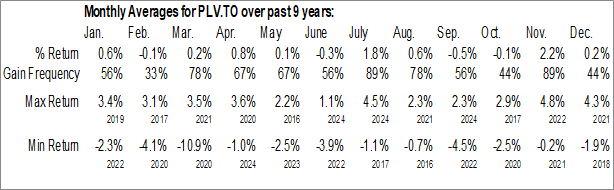 To download PLV.TO seasonal chart data, please log in or Subscribe.