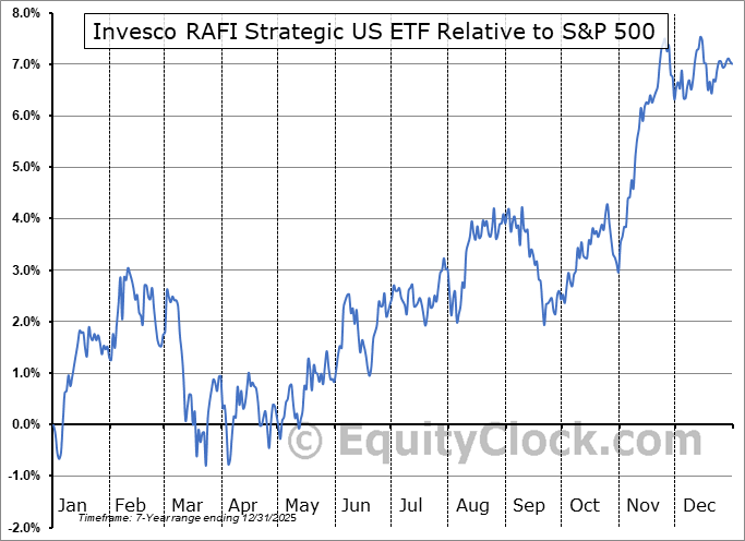 Analysis of the Invesco RAFI Strategic US ETF (NASD:IUS) seasonal charts above shows that a Buy Date of August 31 and a Sell Date of January 7 has resulted in a geometric average return of 1.96% above the benchmark rate of the S&P 500 Total Return Index over the past 6 years. This seasonal timeframe has shown positive results compared to the benchmark in 5 of those periods. This is a very good rate of success and the return strongly outperforms the relative buy-and-hold performance of the stock over the past 6 years by an average of 2.55% per year.