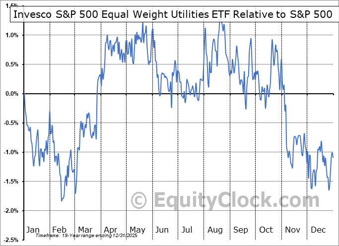 Analysis of the Invesco S&P 500 Equal Weight Utilities ETF (AMEX:RSPU) seasonal charts above shows that a Buy Date of February 14 and a Sell Date of May 15 has resulted in a geometric average return of 2.15% above the benchmark rate of the S&P 500 Total Return Index over the past 19 years. This seasonal timeframe has shown positive results compared to the benchmark in 15 of those periods. This is a good rate of success and the return strongly outperforms the relative buy-and-hold performance of the stock over the past 19 years by an average of 4.16% per year.