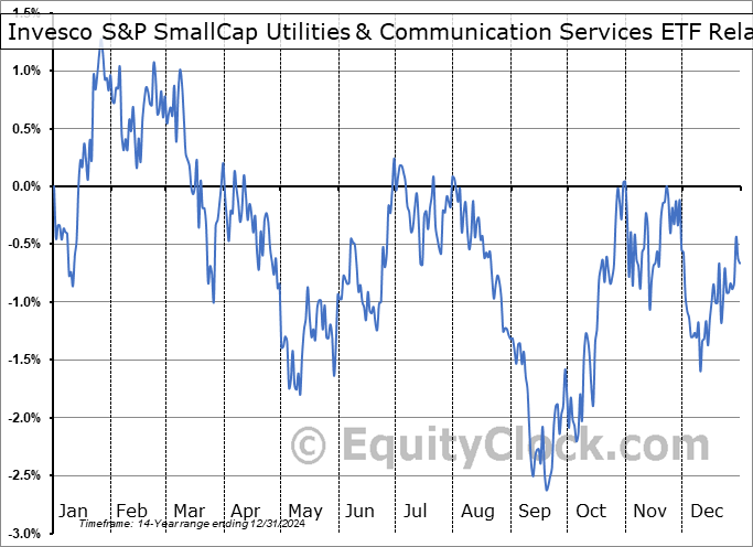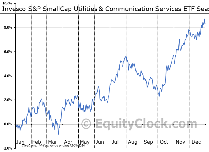 Analysis of the Invesco S&P SmallCap Utilities & Communication Services ETF (NASD:PSCU) seasonal charts above shows that a Buy Date of September 11 and a Sell Date of December 14 has resulted in a geometric average return of 0.07% above the benchmark rate of the S&P 500 Total Return Index over the past 14 years. This seasonal timeframe has shown positive results compared to the benchmark in 9 of those periods. This is a fair rate of success and the return strongly outperforms the relative buy-and-hold performance of the stock over the past 14 years by an average of 4.7% per year.