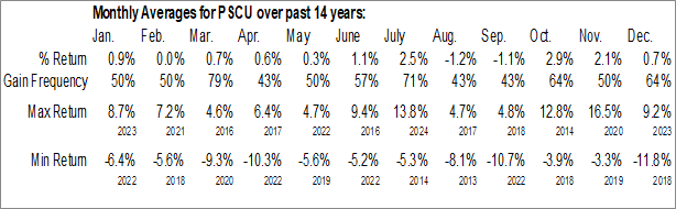 Invesco S&P SmallCap Utilities & Communication Services ETF (NASD:PSCU) Seasonal Chart