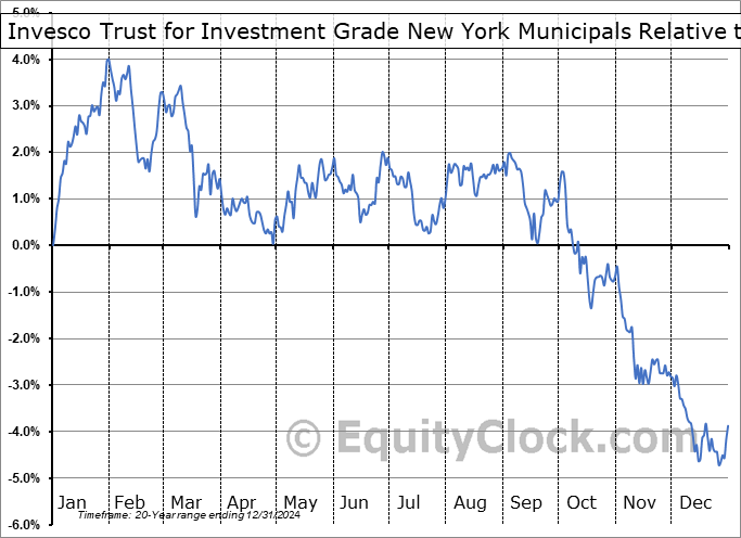 Analysis of the Invesco Trust for Investment Grade New York Municipals (NYSE:VTN) seasonal charts above shows that a Buy Date of November 12 and a Sell Date of January 31 has resulted in a geometric average return of 2.28% above the benchmark rate of the S&P 500 Total Return Index over the past 20 years. This seasonal timeframe has shown positive results compared to the benchmark in 14 of those periods. This is a good rate of success and the return strongly outperforms the relative buy-and-hold performance of the stock over the past 20 years by an average of 8.06% per year.