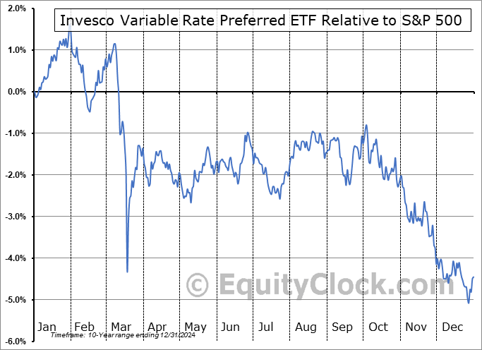 Analysis of the Invesco Variable Rate Preferred ETF (AMEX:VRP) seasonal charts above shows that a Buy Date of July 15 and a Sell Date of October 3 has resulted in a geometric average return of 1.89% above the benchmark rate of the S&P 500 Total Return Index over the past 10 years. This seasonal timeframe has shown positive results compared to the benchmark in 8 of those periods. This is a very good rate of success and the return strongly outperforms the relative buy-and-hold performance of the stock over the past 10 years by an average of 9.07% per year.