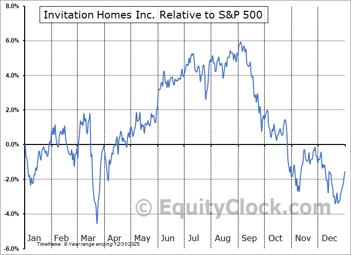 Analysis of the Invitation Homes Inc. (NYSE:INVH) seasonal charts above shows that a Buy Date of March 21 and a Sell Date of August 7 has resulted in a geometric average return of 7.93% above the benchmark rate of the S&P 500 Total Return Index over the past 7 years. This seasonal timeframe has shown positive results compared to the benchmark in 7 of those periods. This is an excellent rate of success and the return strongly outperforms the relative buy-and-hold performance of the stock over the past 7 years by an average of 13.39% per year.