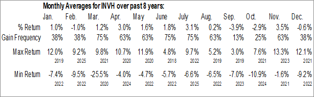 A word of caution: Only 7 years of data is available for shares of INVH, perhaps insufficient to create a seasonal profile that accurately gauges the seasonal tendencies influencing the investment. Ideally, while 20 years is preferred, at least 10 years of data is required to perform a seasonal analysis that is considered to be reliable for future seasonal periods.