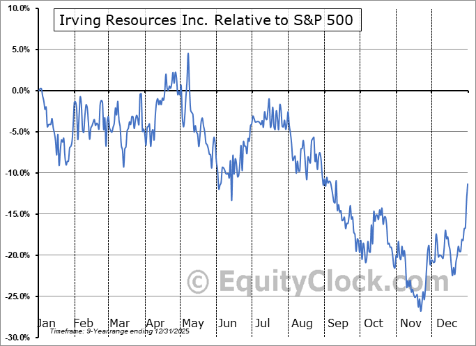 Analysis of the Irving Resources Inc. (OTCMKT:IRVRF) seasonal charts above shows that a Buy Date of November 9 and a Sell Date of January 31 has resulted in a geometric average return of 22.28% above the benchmark rate of the S&P 500 Total Return Index over the past 8 years. This seasonal timeframe has shown positive results compared to the benchmark in 7 of those periods. This is a very good rate of success and the return strongly outperforms the relative buy-and-hold performance of the stock over the past 8 years by an average of 48.34% per year.