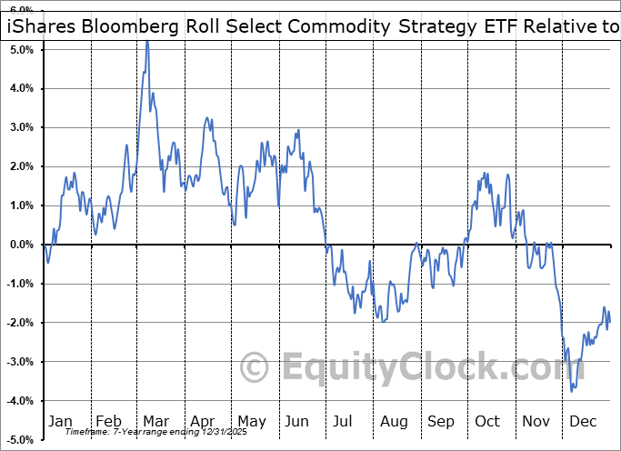 Analysis of the iShares Bloomberg Roll Select Commodity Strategy ETF (AMEX:CMDY) seasonal charts above shows that a Buy Date of February 15 and a Sell Date of May 6 has resulted in a geometric average return of 4.7% above the benchmark rate of the S&P 500 Total Return Index over the past 7 years. This seasonal timeframe has shown positive results compared to the benchmark in 5 of those periods. This is a good rate of success and the return strongly outperforms the relative buy-and-hold performance of the stock over the past 7 years by an average of 13.03% per year.