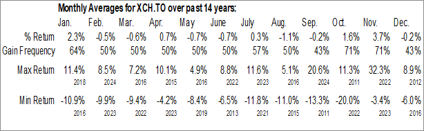 To download XCH.TO seasonal chart data, please log in or Subscribe.