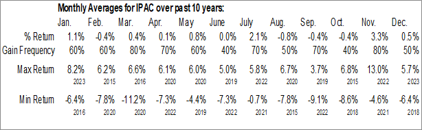 iShares Core MSCI Pacific ETF (AMEX:IPAC) Seasonal Chart