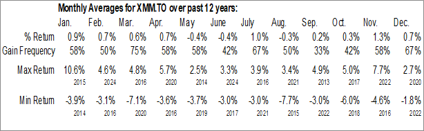 To download XMM.TO seasonal chart data, please log in or Subscribe.