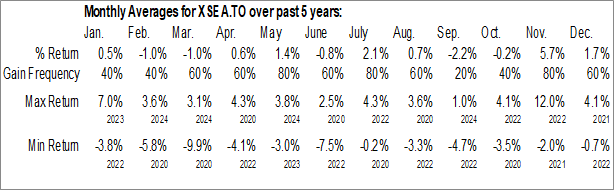 To download XSEA.TO seasonal chart data, please log in or Subscribe.