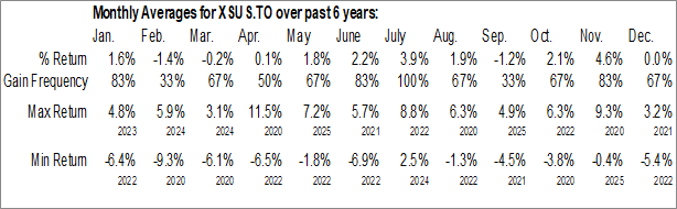 To download XSUS.TO seasonal chart data, please log in or Subscribe.