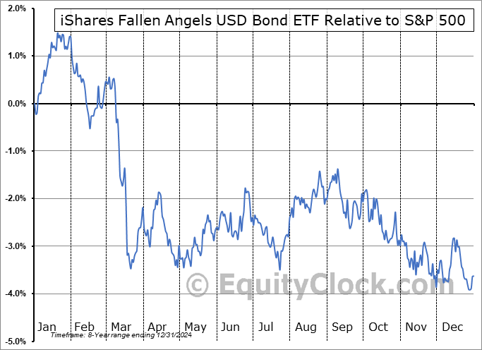 Analysis of the iShares Fallen Angels USD Bond ETF (NASD:FALN) seasonal charts above shows that a Buy Date of July 10 and a Sell Date of September 30 has resulted in a geometric average return of 0.87% above the benchmark rate of the S&P 500 Total Return Index over the past 8 years. This seasonal timeframe has shown positive results compared to the benchmark in 5 of those periods. This is a fair rate of success and the return strongly outperforms the relative buy-and-hold performance of the stock over the past 8 years by an average of 8.76% per year.