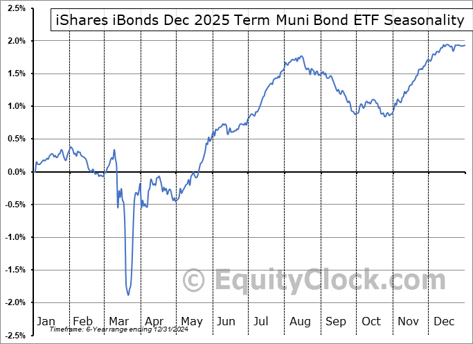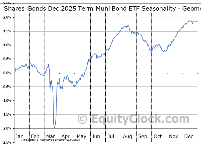 Analysis of the iShares iBonds Dec 2025 Term Muni Bond ETF (AMEX:IBMN) seasonal charts above shows that a Buy Date of December 2 and a Sell Date of March 16 has resulted in a geometric average return of 1.76% above the benchmark rate of the S&P 500 Total Return Index over the past 6 years. This seasonal timeframe has shown positive results compared to the benchmark in 4 of those periods. This is a good rate of success and the return strongly outperforms the relative buy-and-hold performance of the stock over the past 6 years by an average of 15.14% per year.