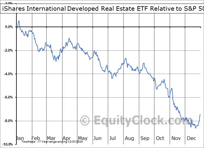 Analysis of the iShares International Developed Real Estate ETF (NASD:IFGL) seasonal charts above shows that a Buy Date of March 13 and a Sell Date of June 2 has resulted in a geometric average return of 0.01% above the benchmark rate of the S&P 500 Total Return Index over the past 17 years. This seasonal timeframe has shown positive results compared to the benchmark in 8 of those periods. This is a poor rate of success and the return strongly outperforms the relative buy-and-hold performance of the stock over the past 17 years by an average of 10.14% per year.