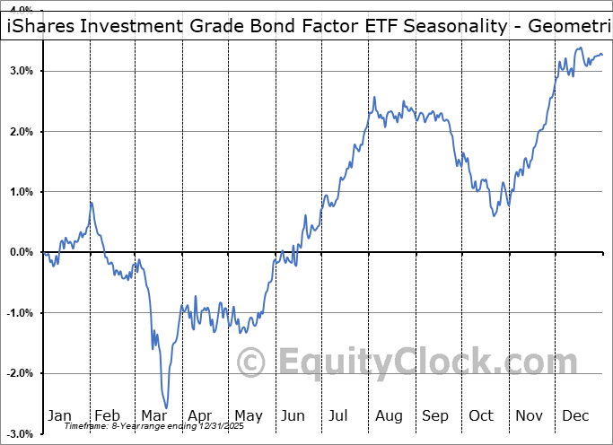 Analysis of the iShares Investment Grade Bond Factor ETF (AMEX:IGEB) seasonal charts above shows that a Buy Date of July 10 and a Sell Date of September 30 has resulted in a geometric average return of 0.09% above the benchmark rate of the S&P 500 Total Return Index over the past 7 years. This seasonal timeframe has shown positive results compared to the benchmark in 5 of those periods. This is a good rate of success and the return strongly outperforms the relative buy-and-hold performance of the stock over the past 7 years by an average of 9.71% per year.
