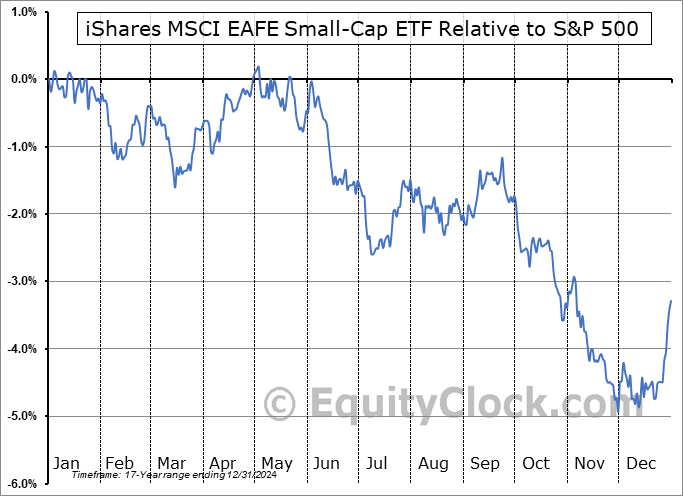 Analysis of the iShares MSCI EAFE Small-Cap ETF (NASD:SCZ) seasonal charts above shows that a Buy Date of November 29 and a Sell Date of February 21 has resulted in a geometric average return of 0.72% above the benchmark rate of the S&P 500 Total Return Index over the past 16 years. This seasonal timeframe has shown positive results compared to the benchmark in 13 of those periods. This is a very good rate of success and the return strongly outperforms the relative buy-and-hold performance of the stock over the past 16 years by an average of 7.21% per year.
