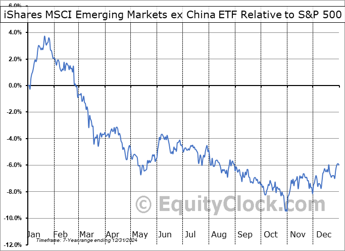 Analysis of the iShares MSCI Emerging Markets ex China ETF (NASD:EMXC) seasonal charts above shows that a Buy Date of October 7 and a Sell Date of January 7 has resulted in a geometric average return of 3.5% above the benchmark rate of the S&P 500 Total Return Index over the past 7 years. This seasonal timeframe has shown positive results compared to the benchmark in 6 of those periods. This is a very good rate of success and the return strongly outperforms the relative buy-and-hold performance of the stock over the past 7 years by an average of 13.2% per year.