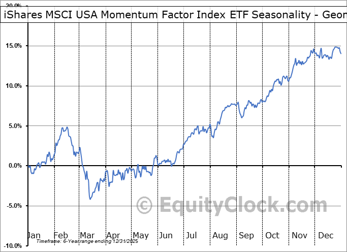 Analysis of the iShares MSCI USA Momentum Factor Index ETF (TSE:XMTM.TO) seasonal charts above shows that a Buy Date of June 8 and a Sell Date of November 2 has resulted in a geometric average return of 7.12% above the benchmark rate of the S&P 500 Total Return Index over the past 5 years. This seasonal timeframe has shown positive results compared to the benchmark in 5 of those periods. This is an excellent rate of success and the return strongly outperforms the relative buy-and-hold performance of the stock over the past 5 years by an average of 7.85% per year.