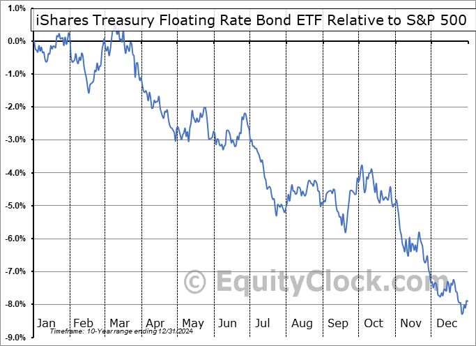 Analysis of the iShares Treasury Floating Rate Bond ETF (AMEX:TFLO) seasonal charts above shows that a Buy Date of July 23 and a Sell Date of October 12 has resulted in a geometric average return of 0.81% above the benchmark rate of the S&P 500 Total Return Index over the past 10 years. This seasonal timeframe has shown positive results compared to the benchmark in 7 of those periods. This is a good rate of success and the return strongly outperforms the relative buy-and-hold performance of the stock over the past 10 years by an average of 10.72% per year.