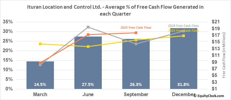 Ituran Location and Control Ltd. (NASD:ITRN) Seasonal Chart