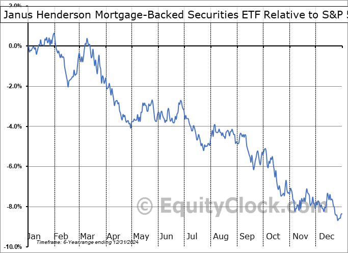 Analysis of the Janus Henderson Mortgage-Backed Securities ETF (AMEX:JMBS) seasonal charts above shows that a Buy Date of November 15 and a Sell Date of March 16 has resulted in a geometric average return of 2.43% above the benchmark rate of the S&P 500 Total Return Index over the past 6 years. This seasonal timeframe has shown positive results compared to the benchmark in 4 of those periods. This is a good rate of success and the return strongly outperforms the relative buy-and-hold performance of the stock over the past 6 years by an average of 16.43% per year.