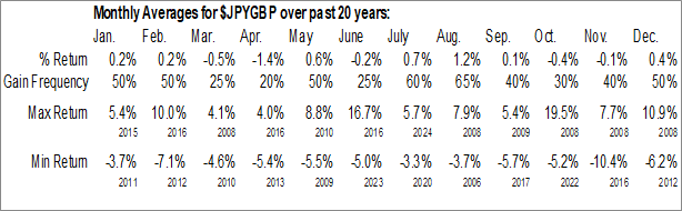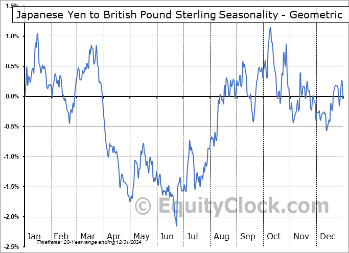 Japanese Yen to British Pound Sterling (JPY-GBP) Seasonal Chart