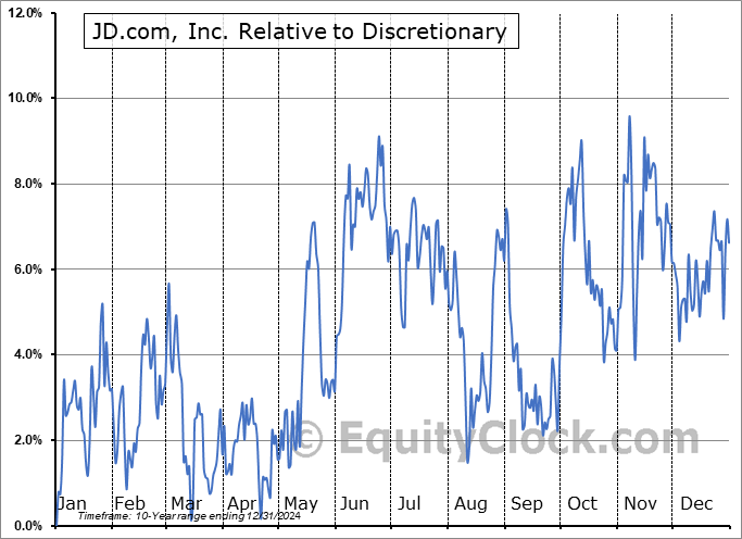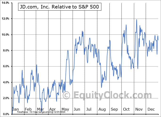 Analysis of the JD.com, Inc. (NASD:JD) seasonal charts above shows that a Buy Date of October 31 and a Sell Date of January 25 has resulted in a geometric average return of 6.51% above the benchmark rate of the S&P 500 Total Return Index over the past 10 years. This seasonal timeframe has shown positive results compared to the benchmark in 8 of those periods. This is a very good rate of success and the return strongly outperforms the relative buy-and-hold performance of the stock over the past 10 years by an average of 13.83% per year.